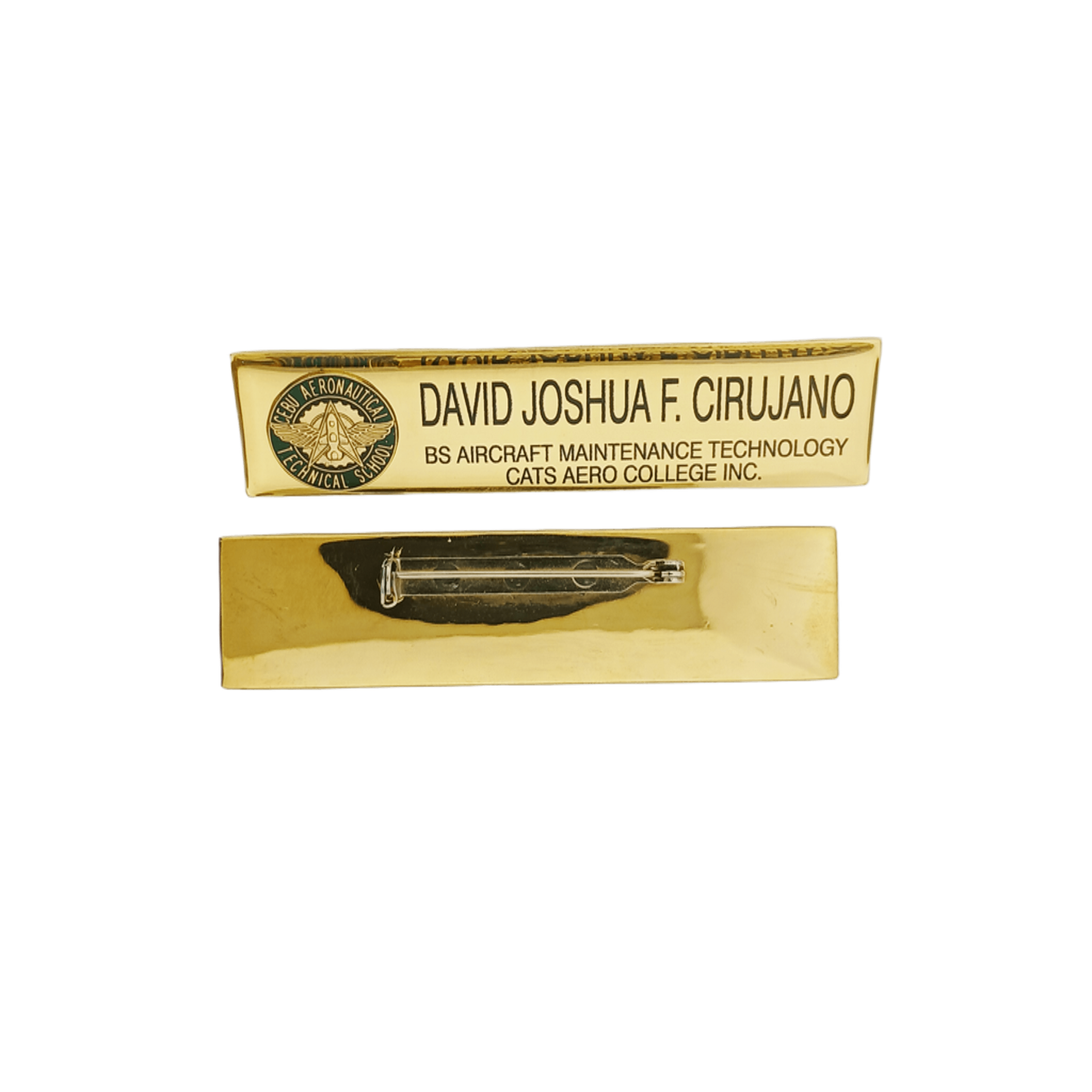 Material/Finish: | Choice of Acrylic or Brass, With UV-printed text and embossed CATS logo, Laminated surface for added durability, Gold Background, Black Text |