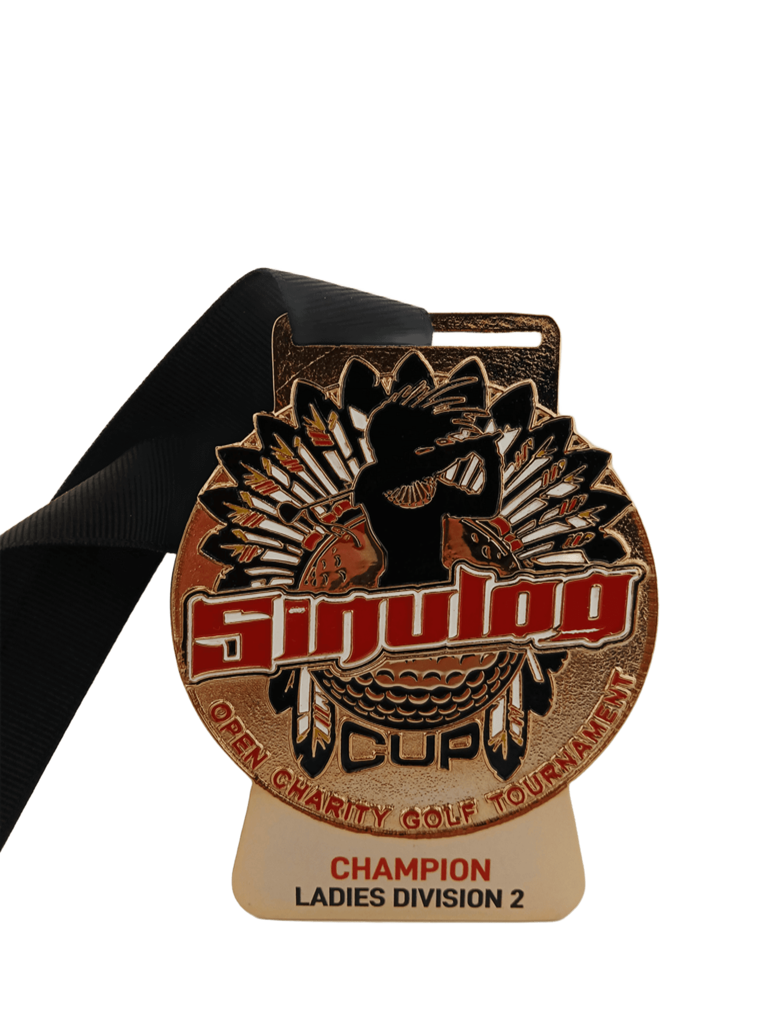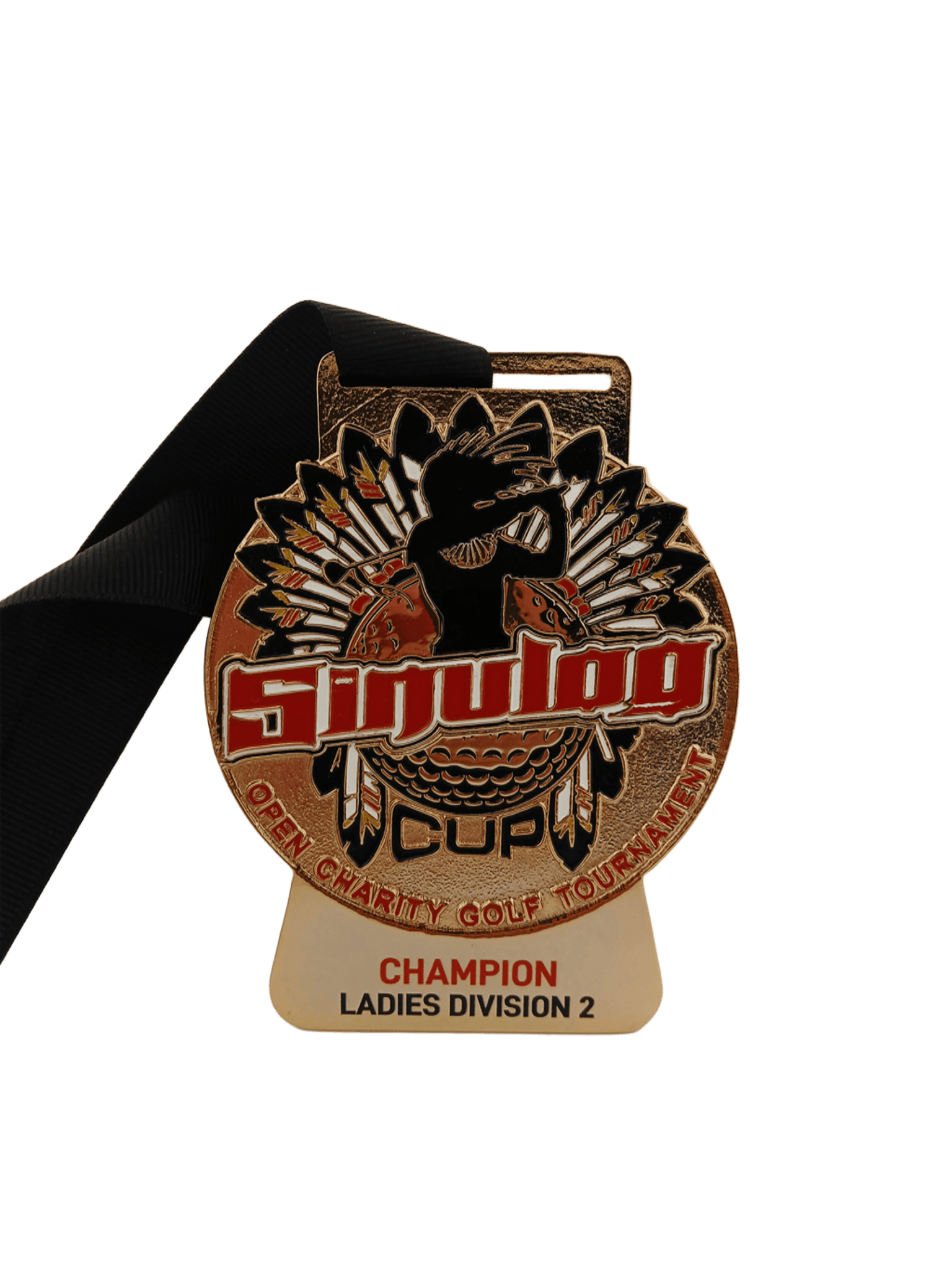 | Material/Finish: | Base Metal Material, Gold Plated Finish, Embossed relief elements + UV print on front (“Champion Ladies Division”) + UV print also on back |
