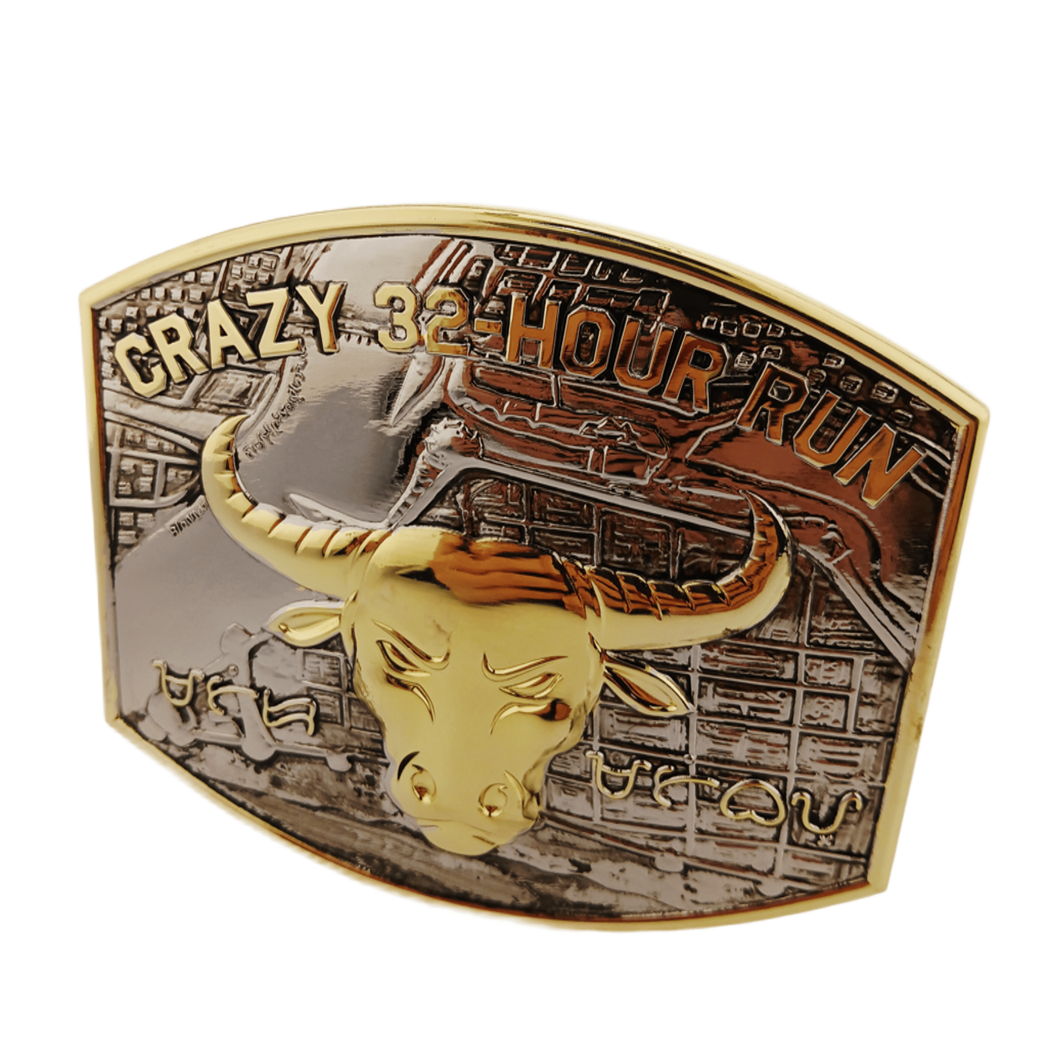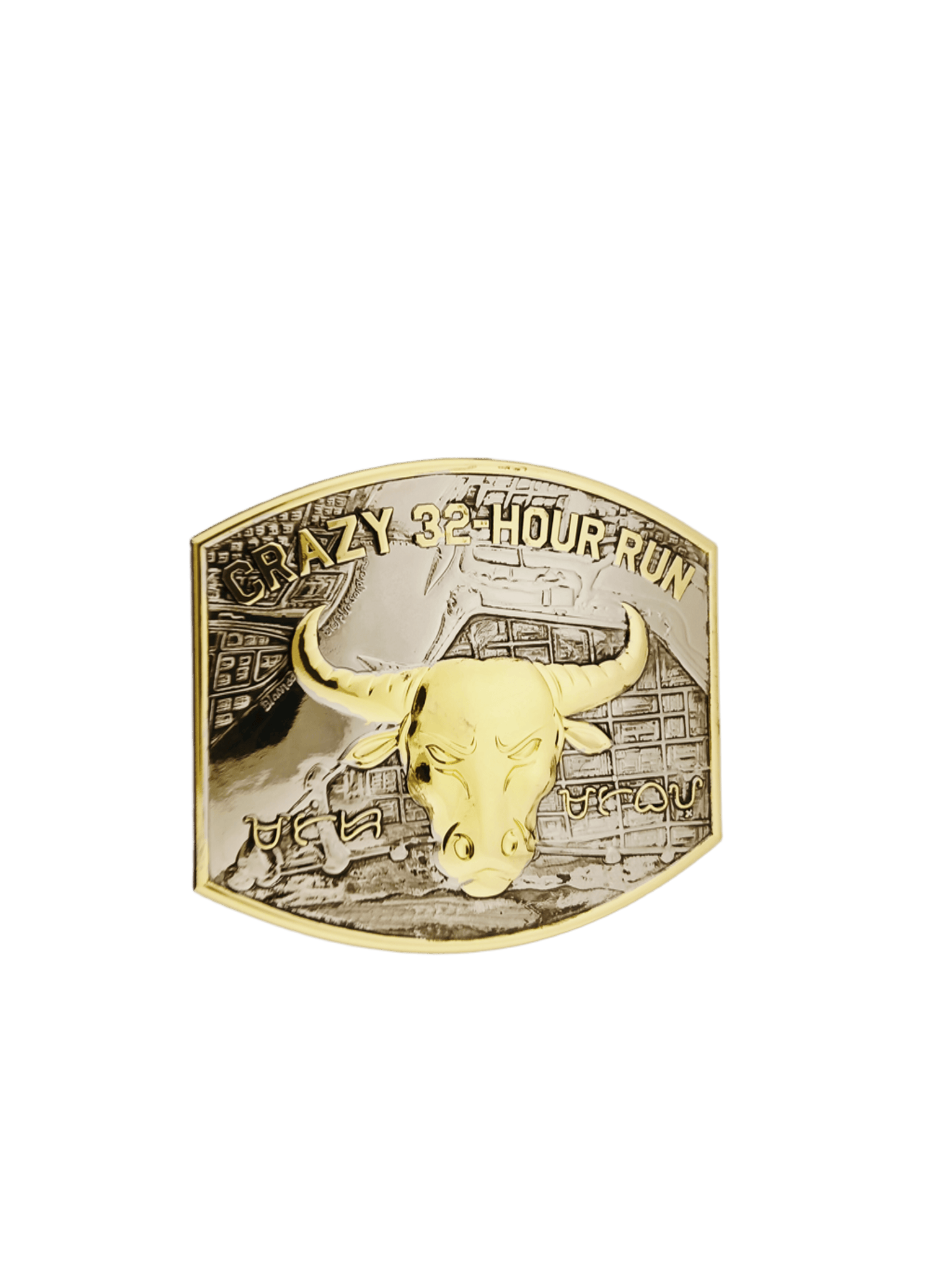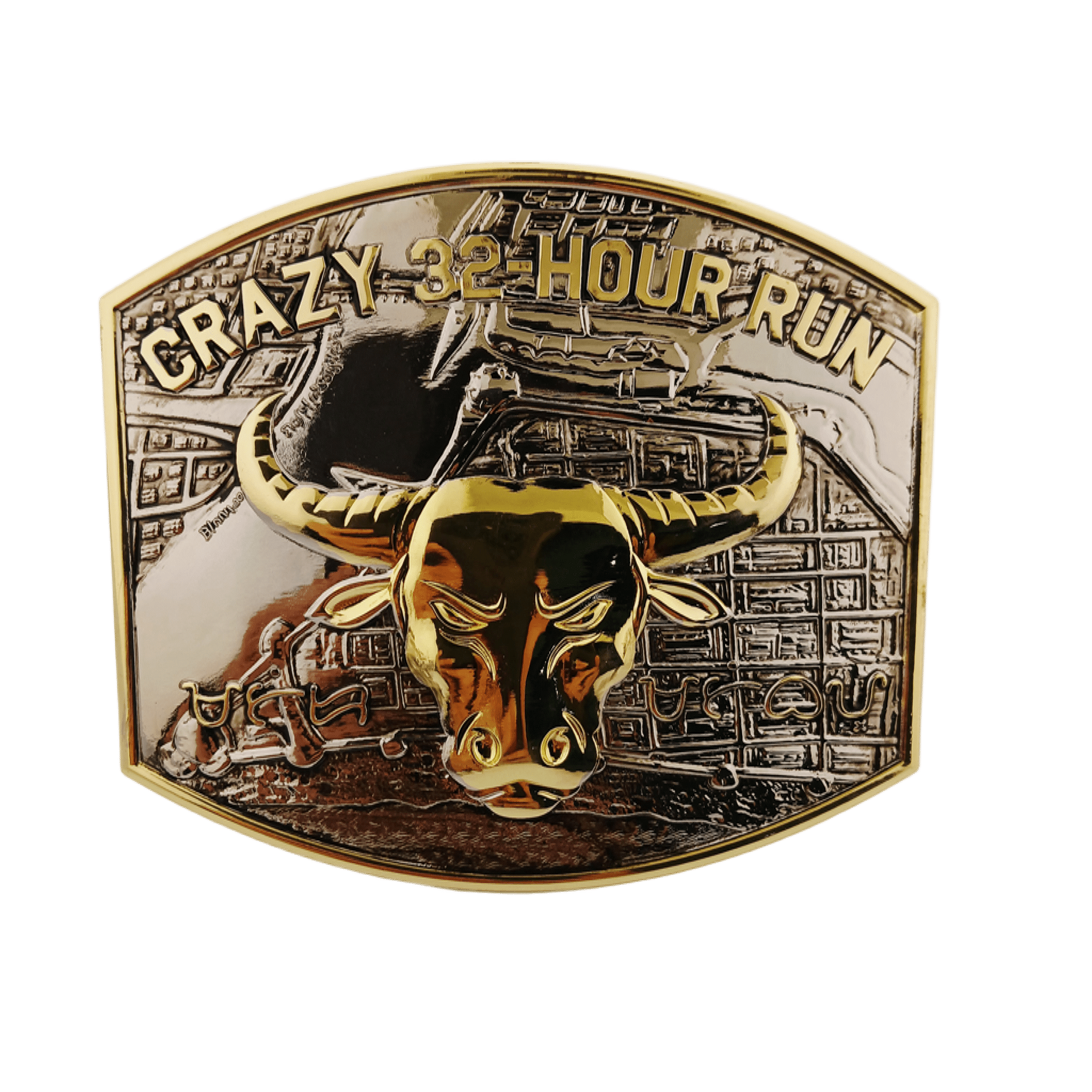 | Usage/Purpose: | Finisher buckle award for ultra-running or endurance event (32-hour run) — wearable keepsake of achievement. |
