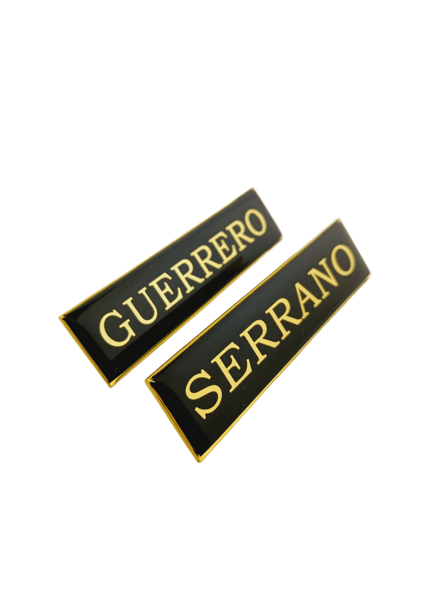 Mounting: | 2 Pin Post Back with grip fasteners for secure attachment to uniforms. Magnet Back (for non-invasive clothing attachment) |