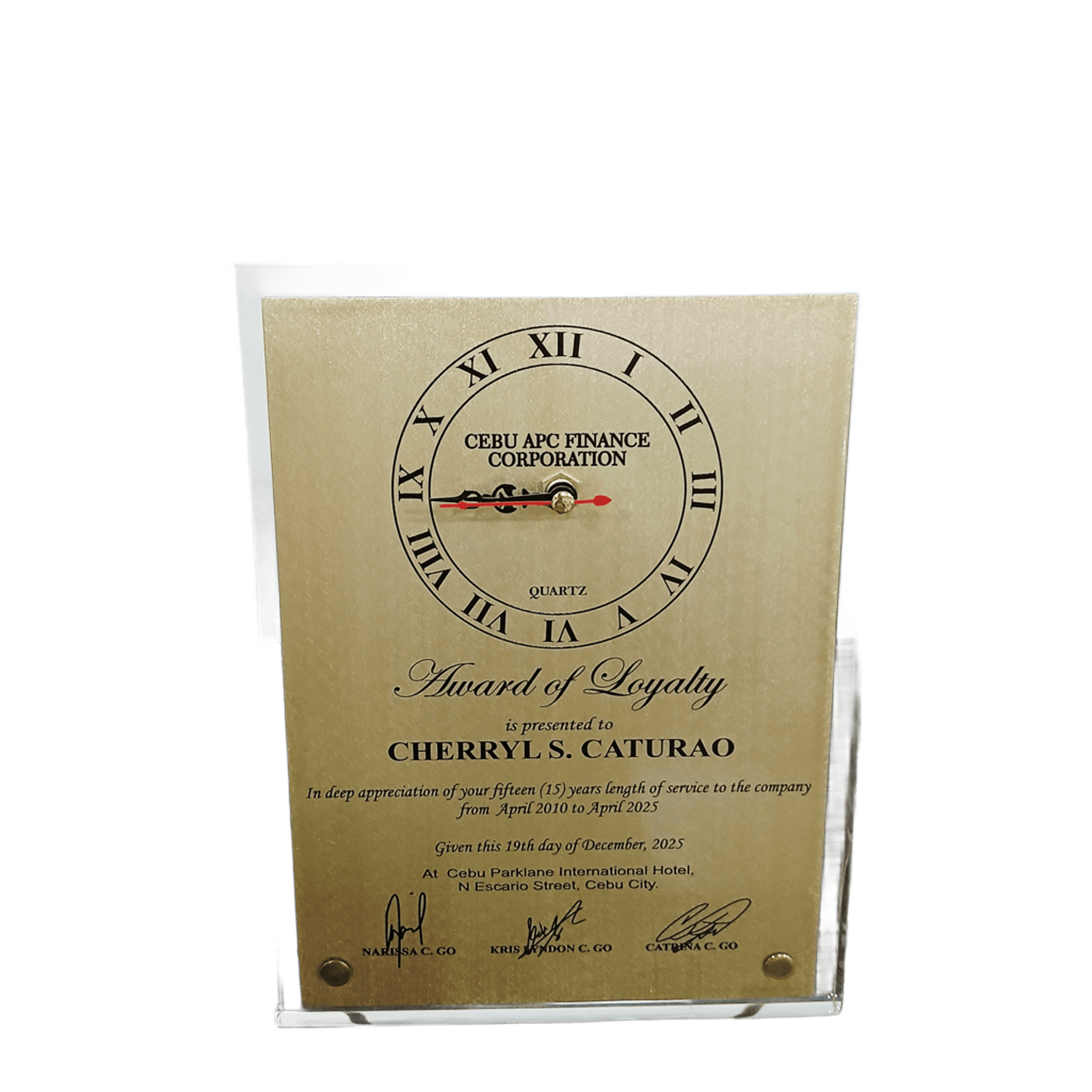 Cebu APC Finance Corp. Clock Plaque - Award of Loyalty