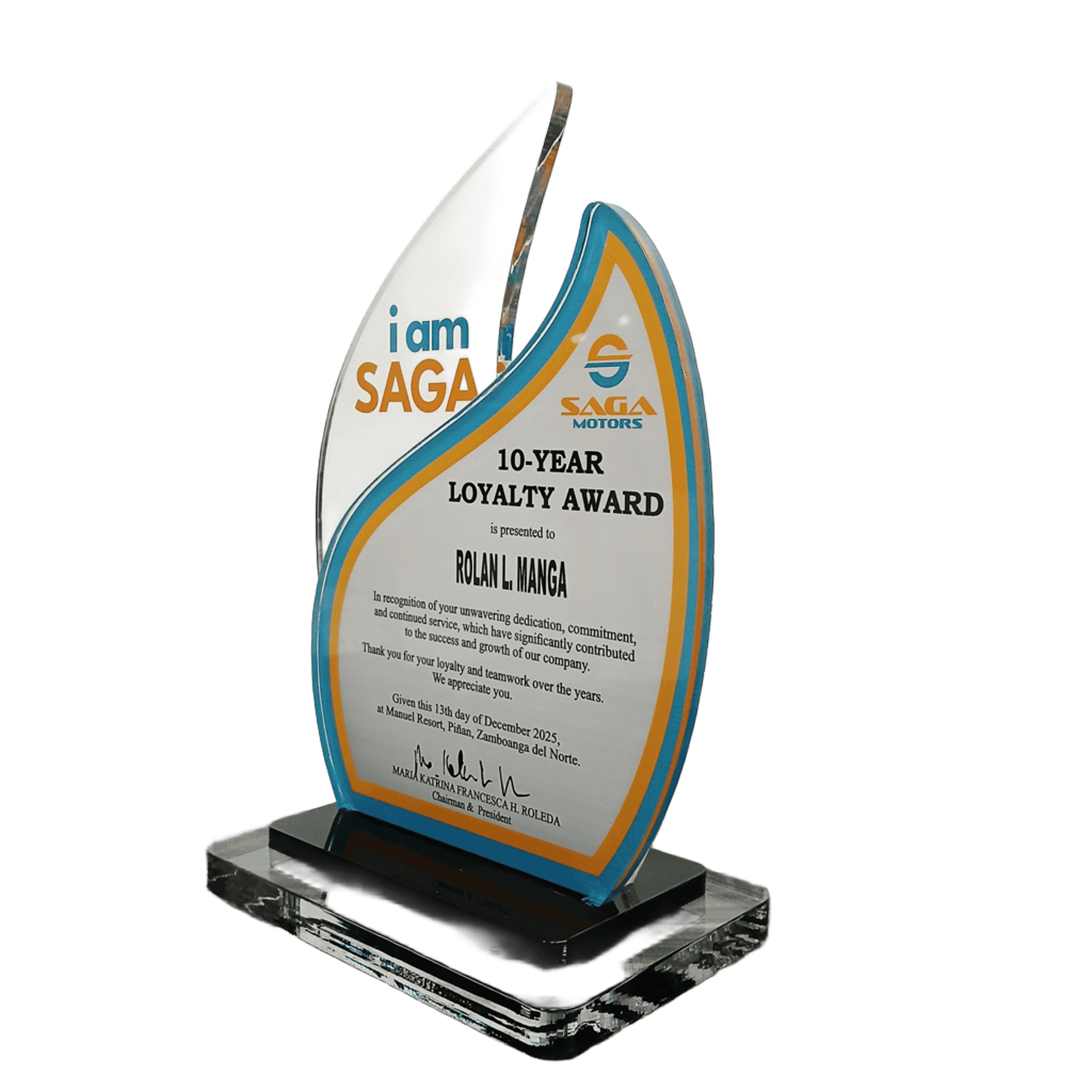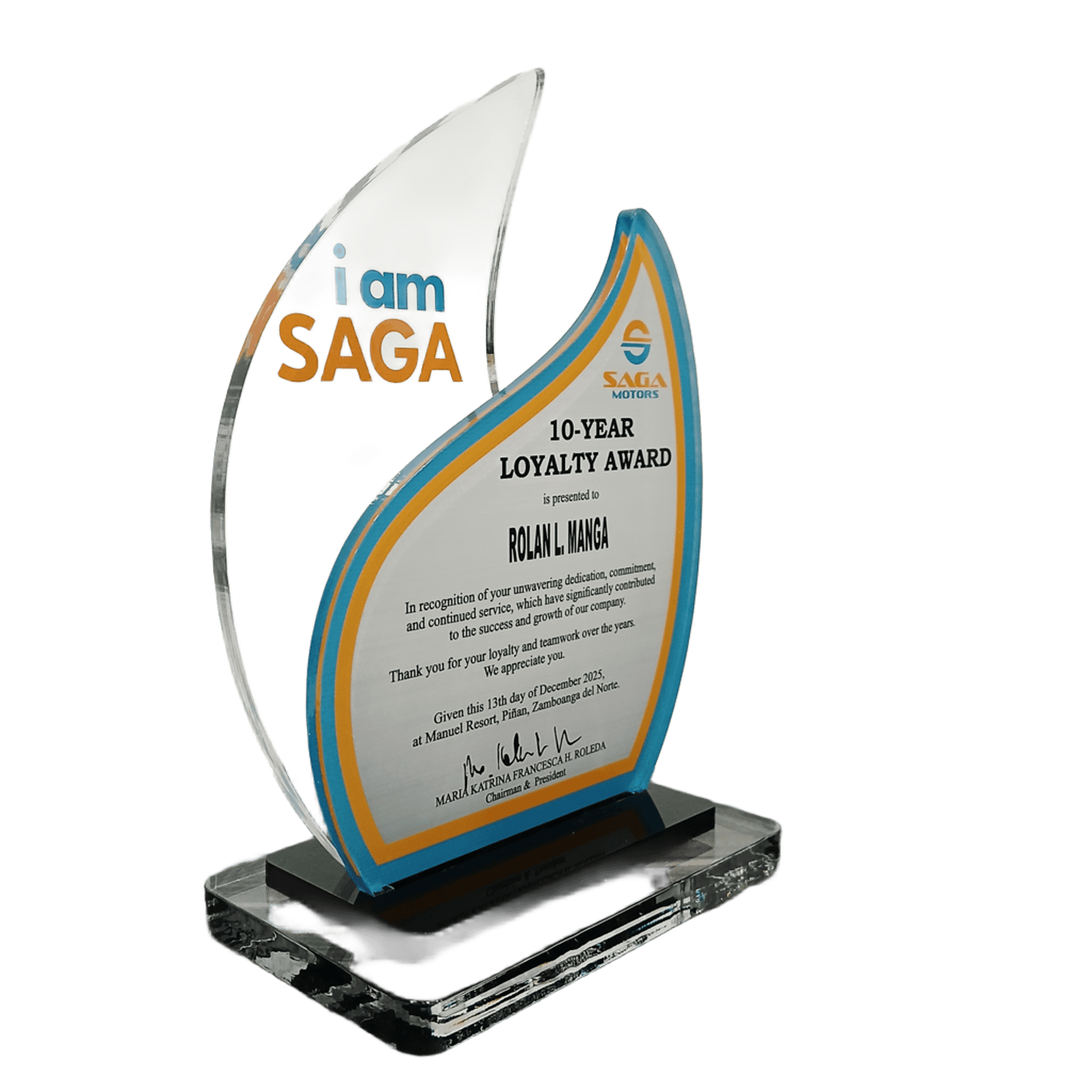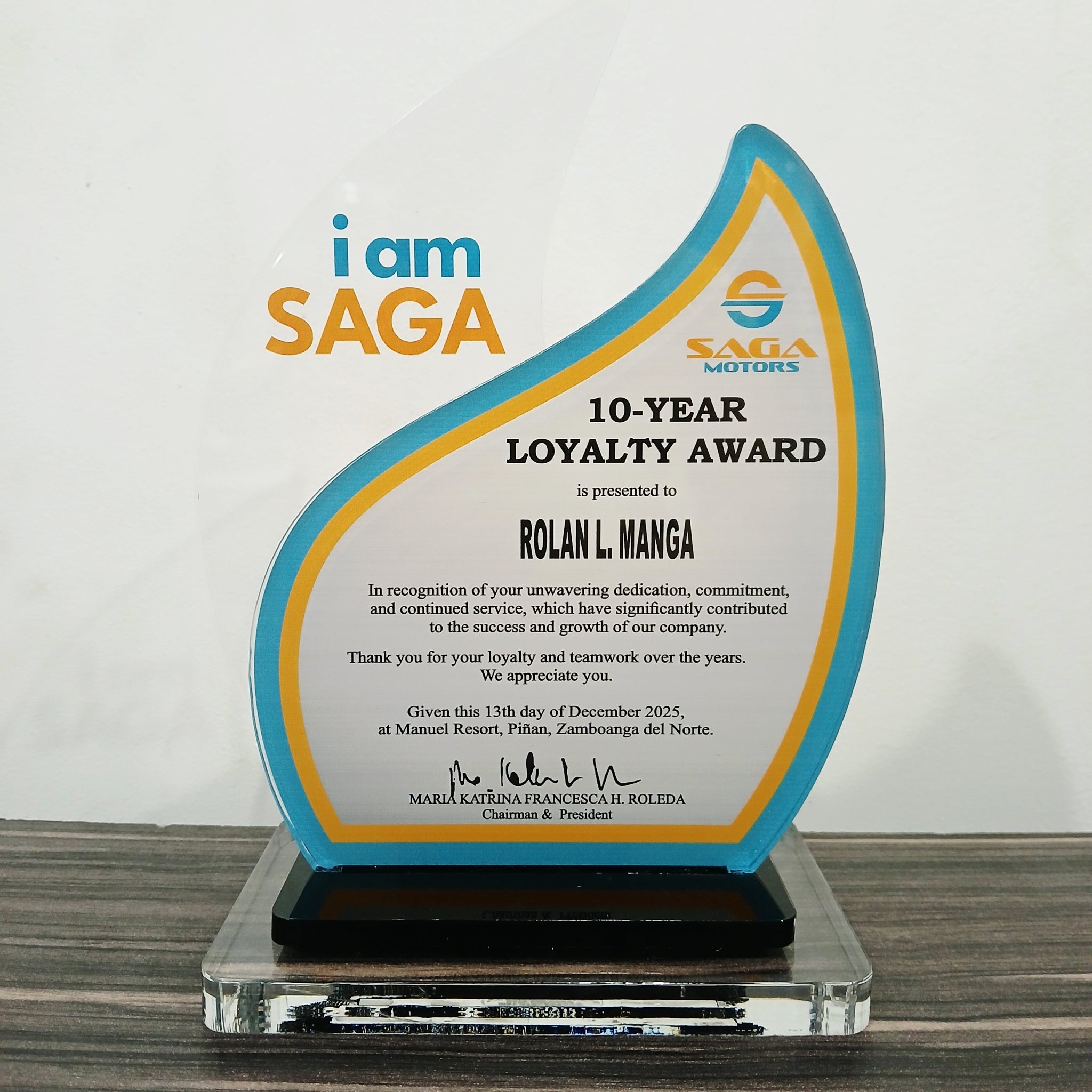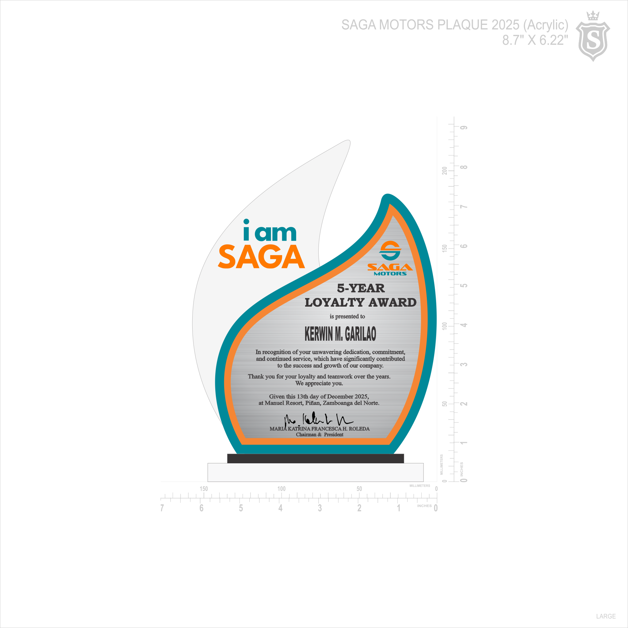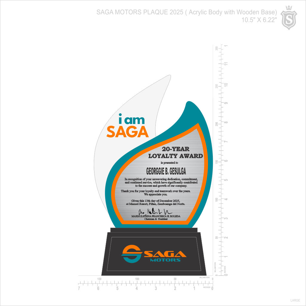 Saga Plaque - 20 Year Loyalty Award