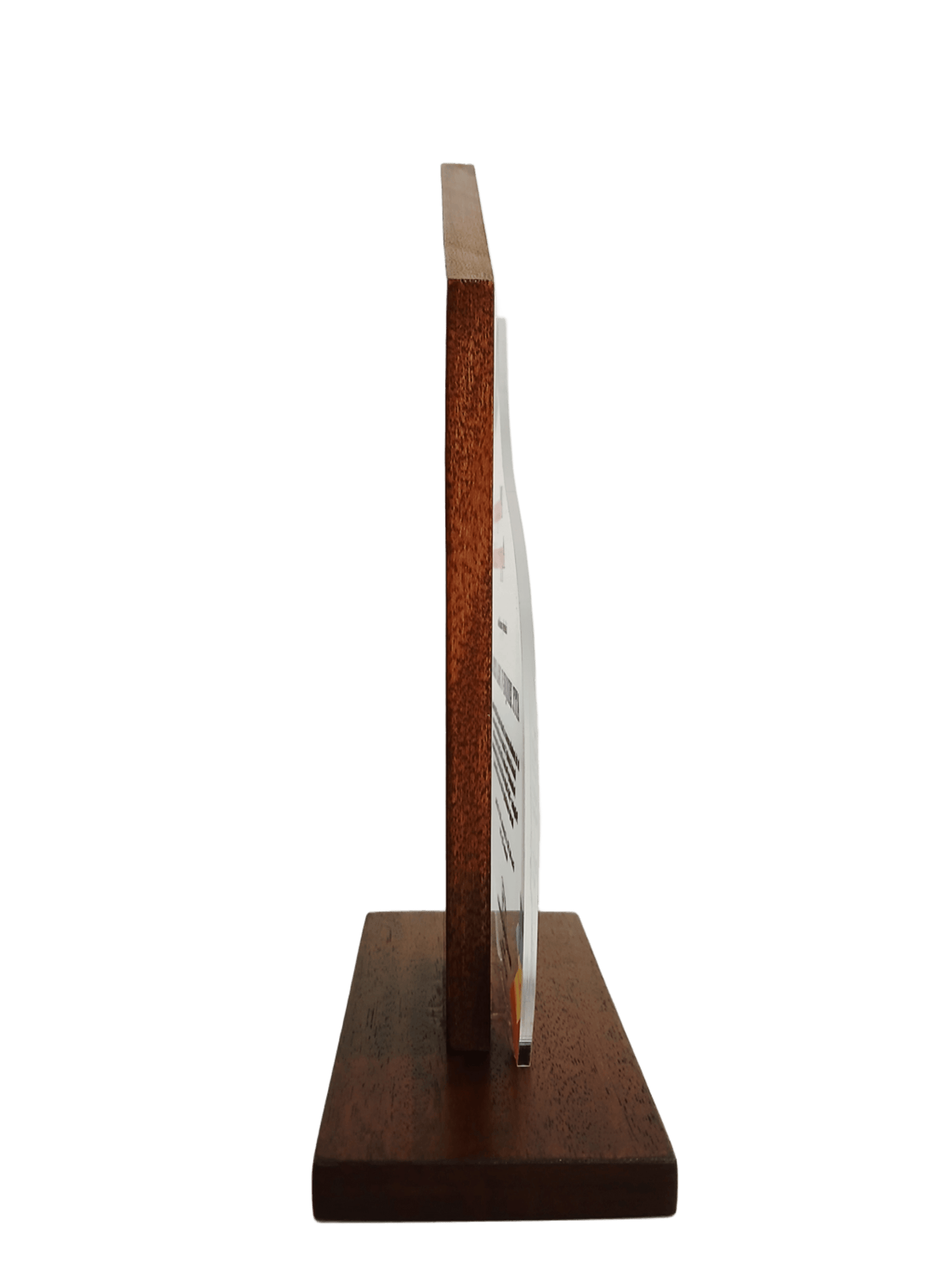 3mm Clear Acrylic + 1/4" Mahogany Wood with Wooden Base.
