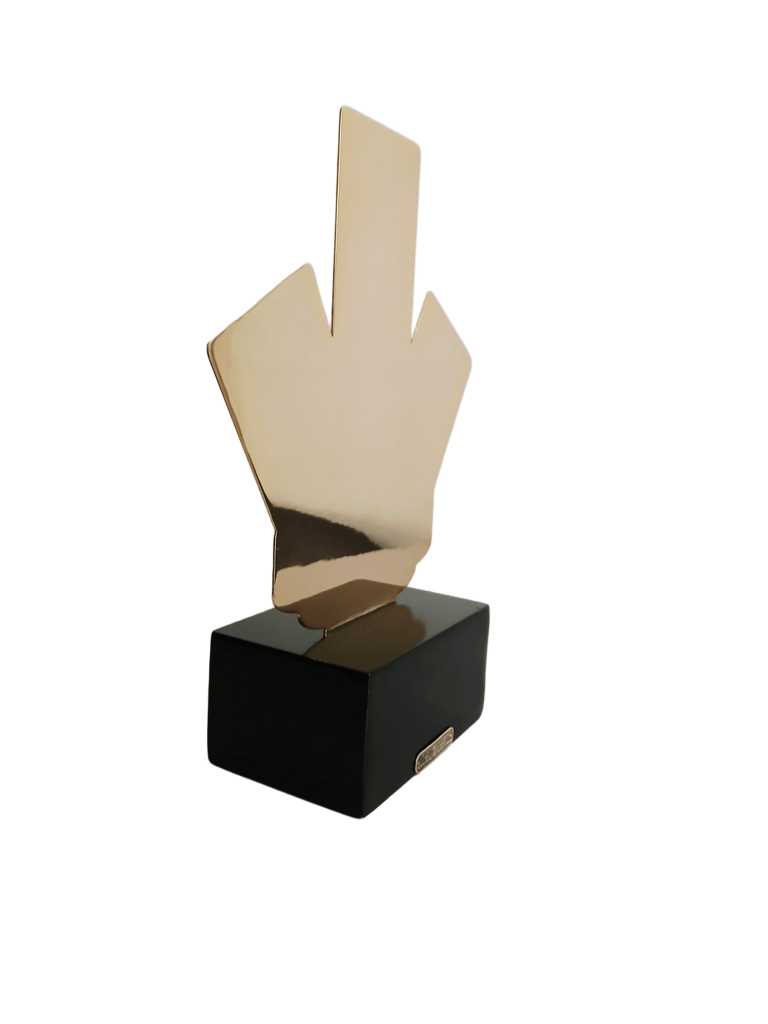 Material: MDF wood Finish: Painted black Mounted with brass plate Brass plate thickness: 1.5mm Plate engraving: CNC engraved text with polished gold finish border |