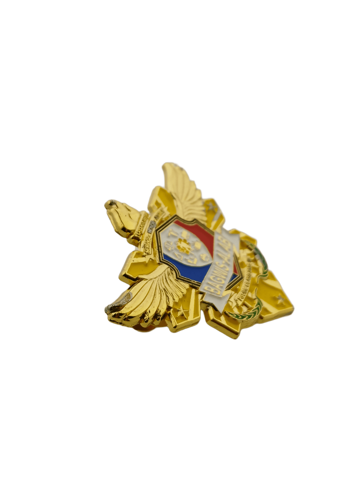 Production Style: Embossed metal using custom molds with high-pressure stamping; hand-finished, electroplated, and painted for detail