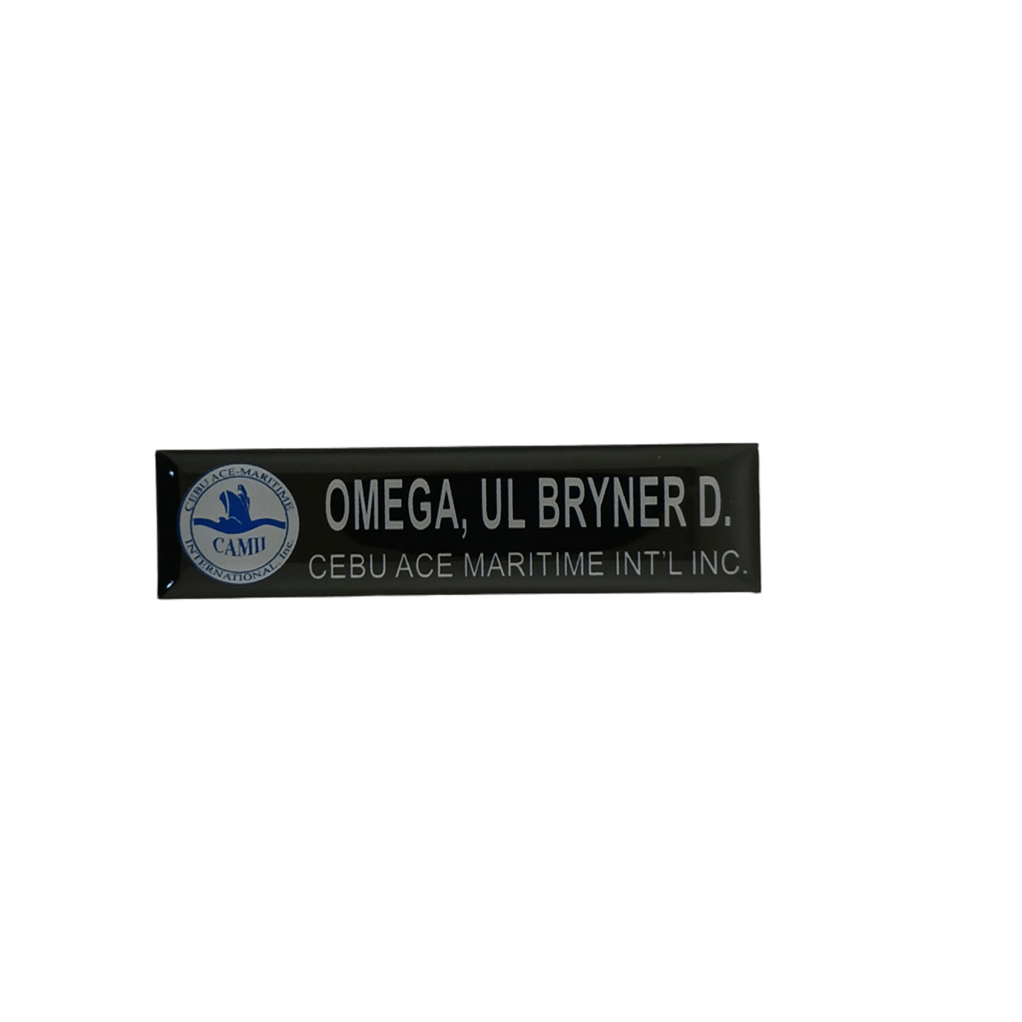 | Material/Finish: | Choice of Acrylic or Brass, With UV-printed text and logo, Laminated surface for added durability, Black Background, White Text |