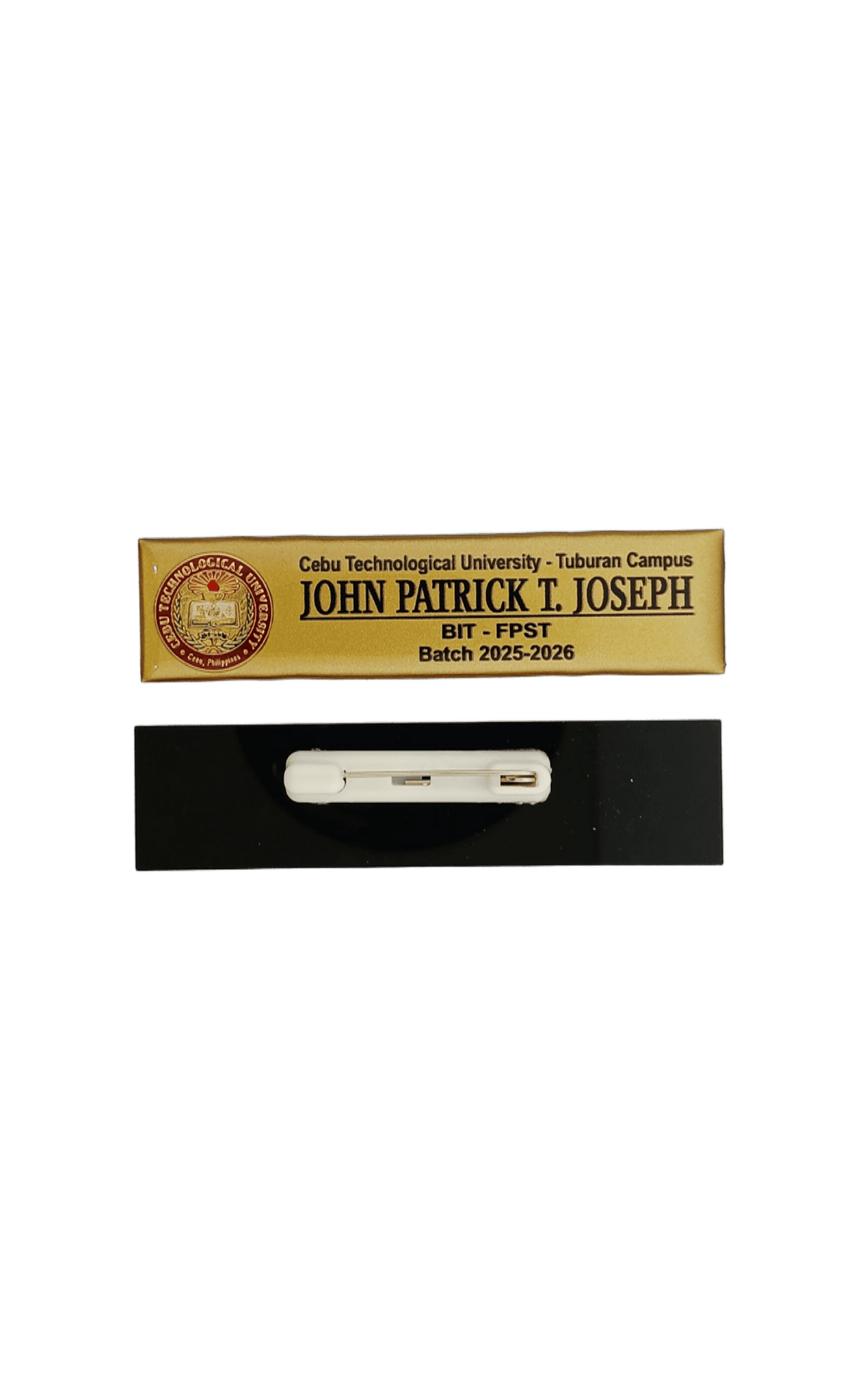 Material/Finish: | Choice of Acrylic or Brass, With UV-printed text and embossed logo, Laminated surface for added durability, Gold Background, Black Text |