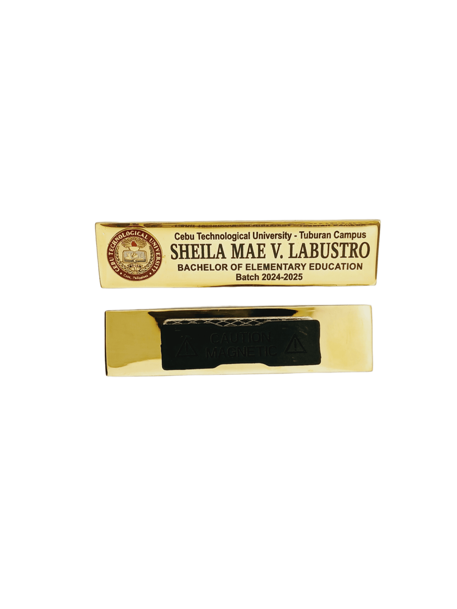 | Material/Finish: | Choice of Acrylic or Brass, With UV-printed text, Embossed CTU logo, Laminated surface for added durability, Gold Background, Black Text |