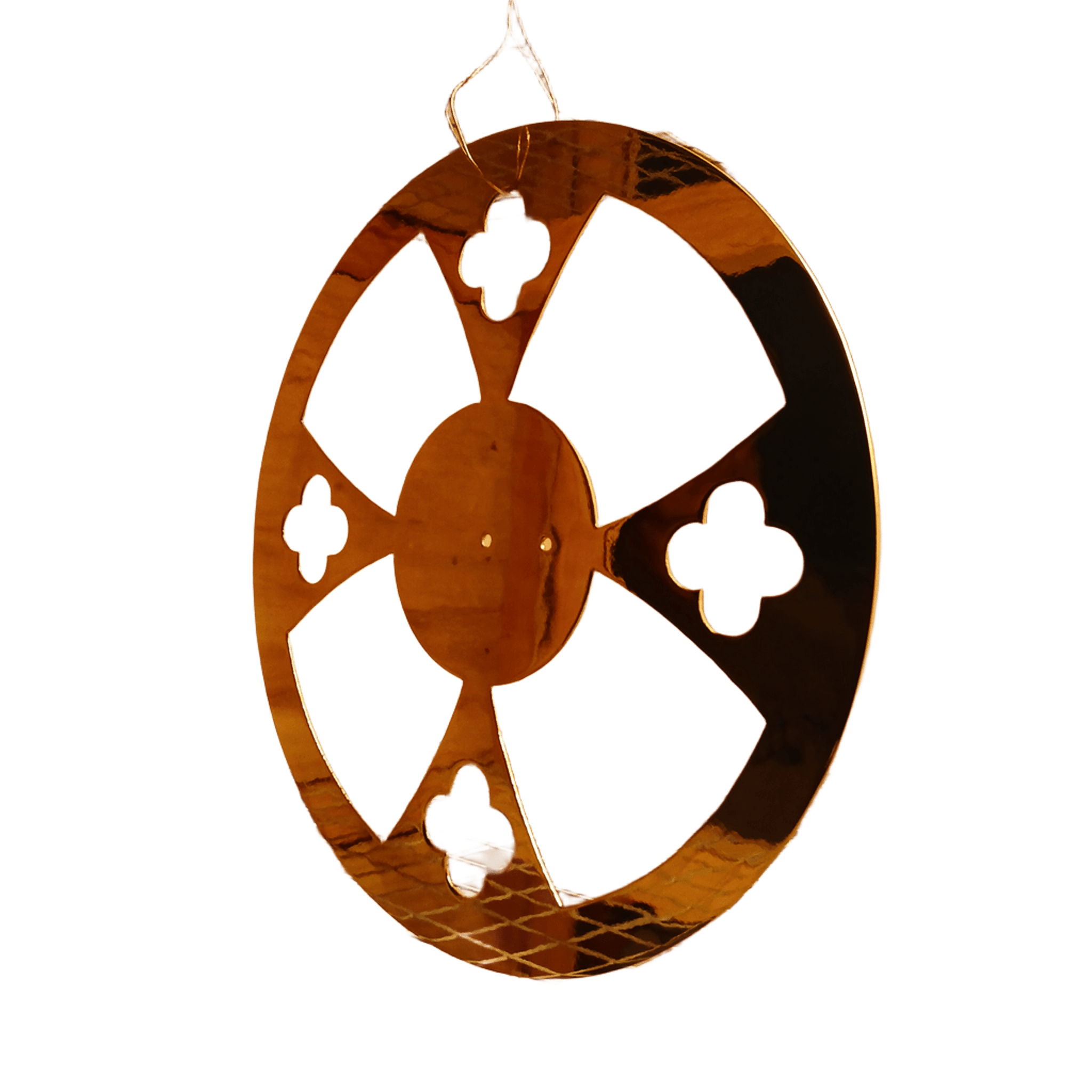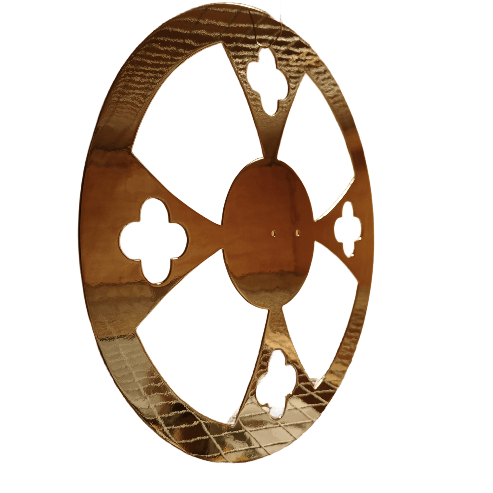 | Shape: | Round halo form with decorative cross cut-outs |