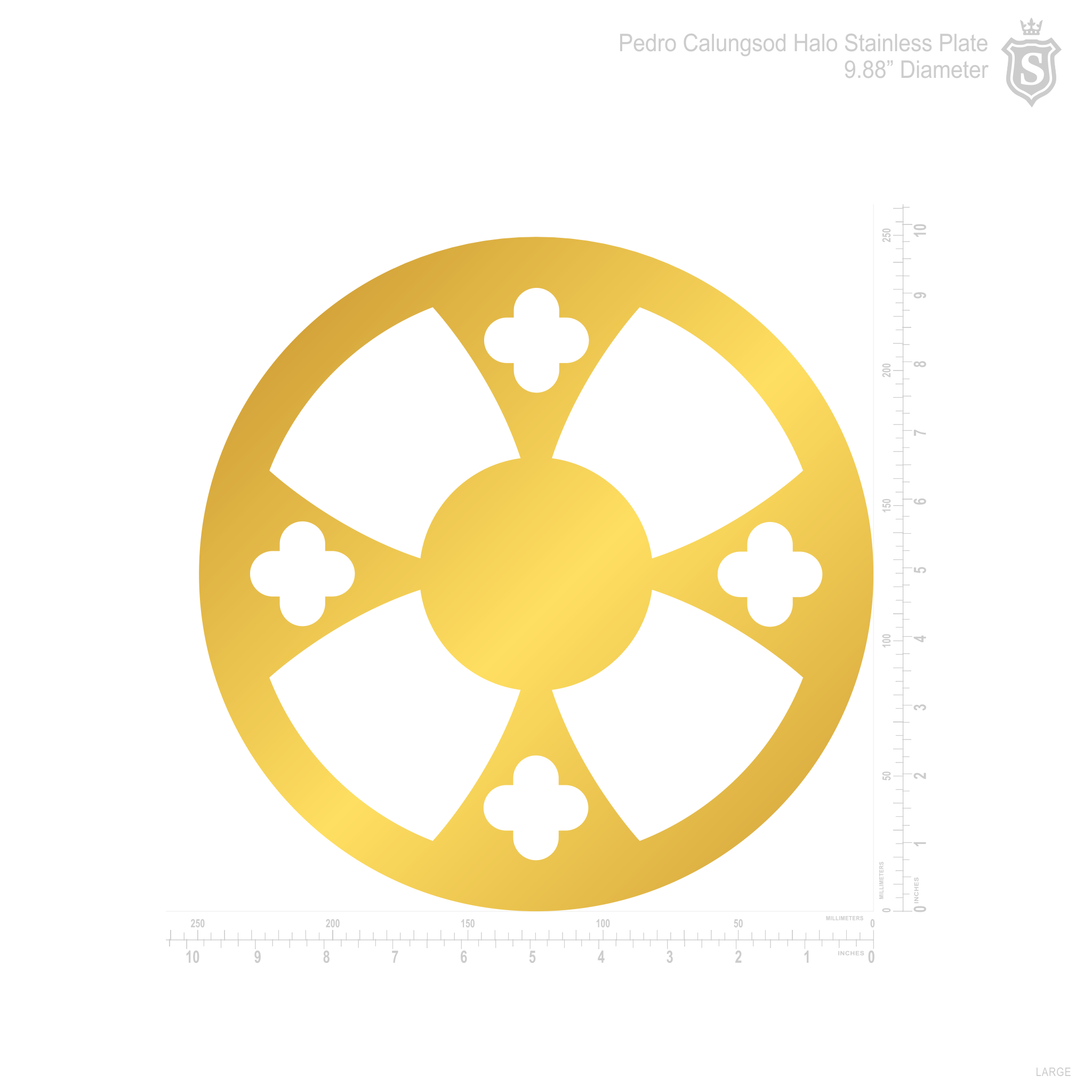 | Overall Size: | Approximately 9.88” diameter (250 mm) |