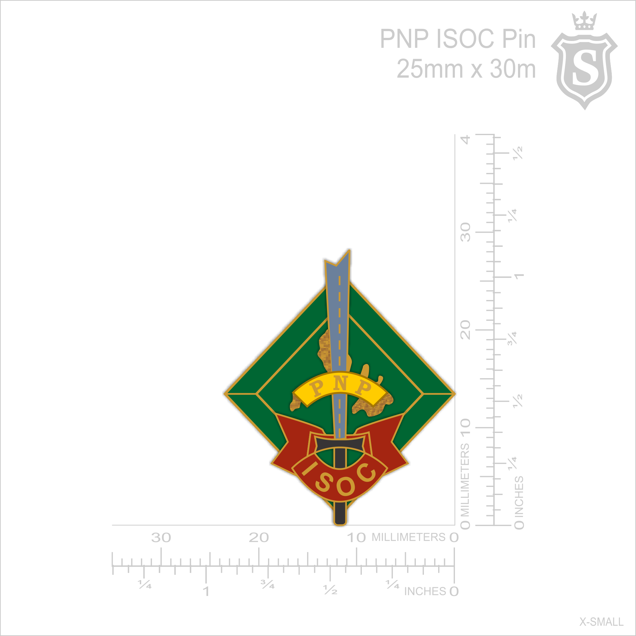 | Shape: | Diamond-shaped badge with pointed base — symbolizing sharpness, discipline, and readiness of PNP Internal Security Operations Course (ISOC) personnel |
