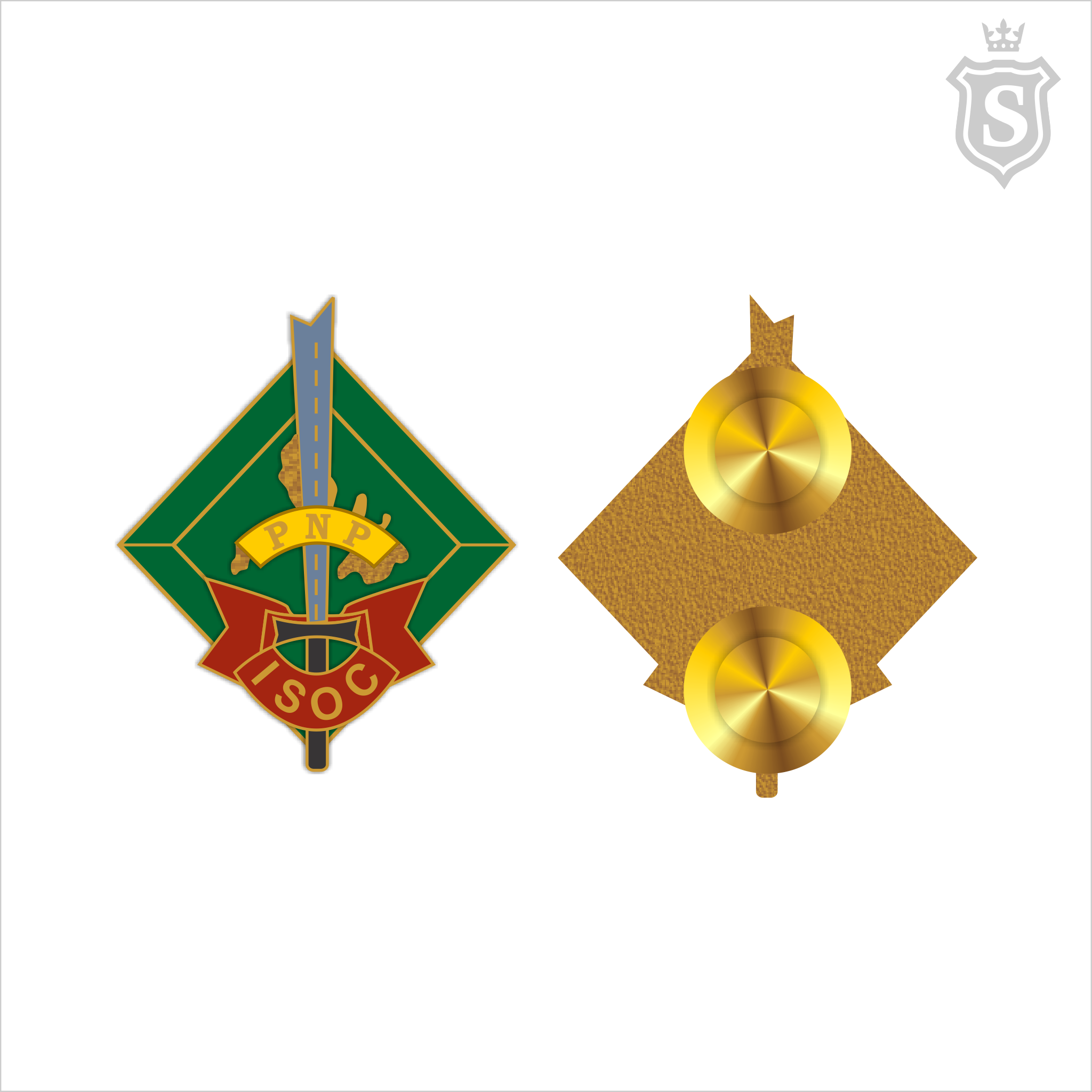 | Usage: | Official training and recognition pin for PNP ISOC graduates, instructors, and affiliated training centers; used for formal events, uniform wear, and symbolic representation of internal security proficiency. |