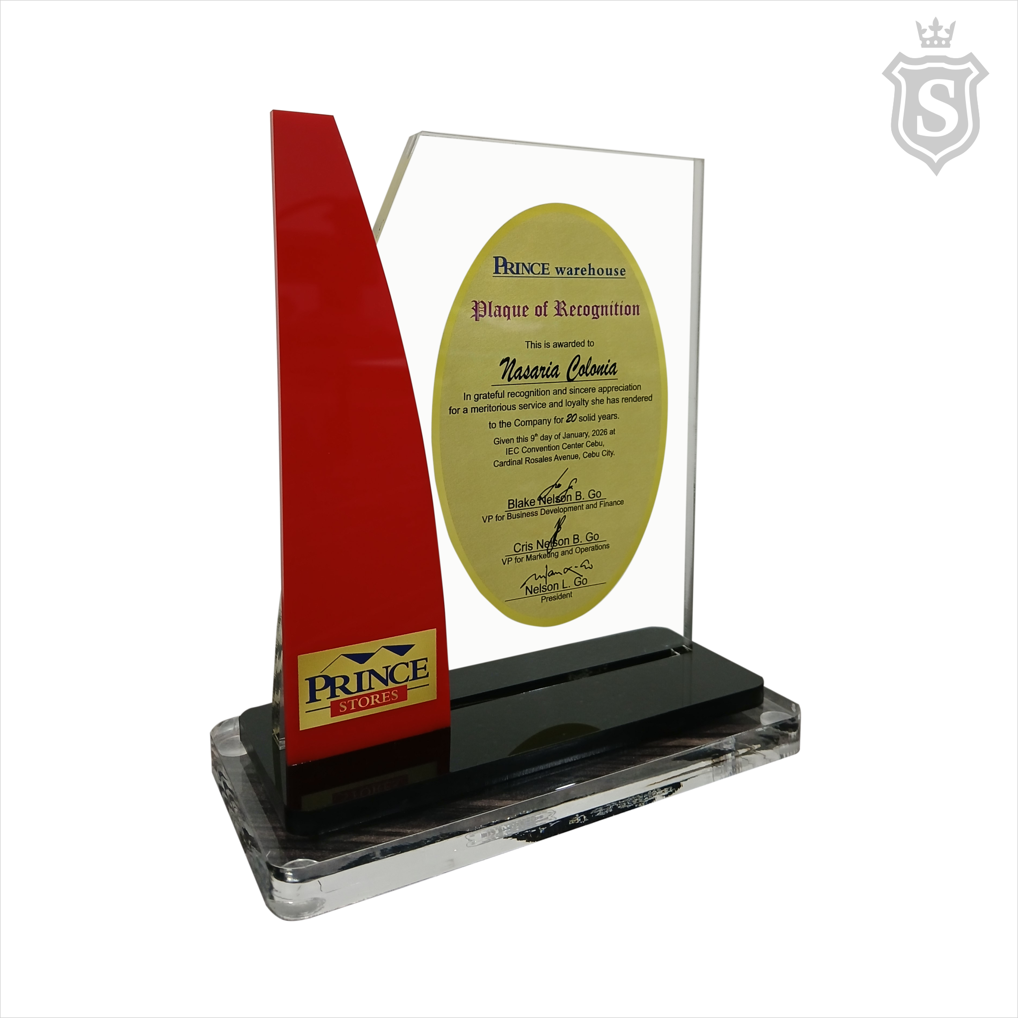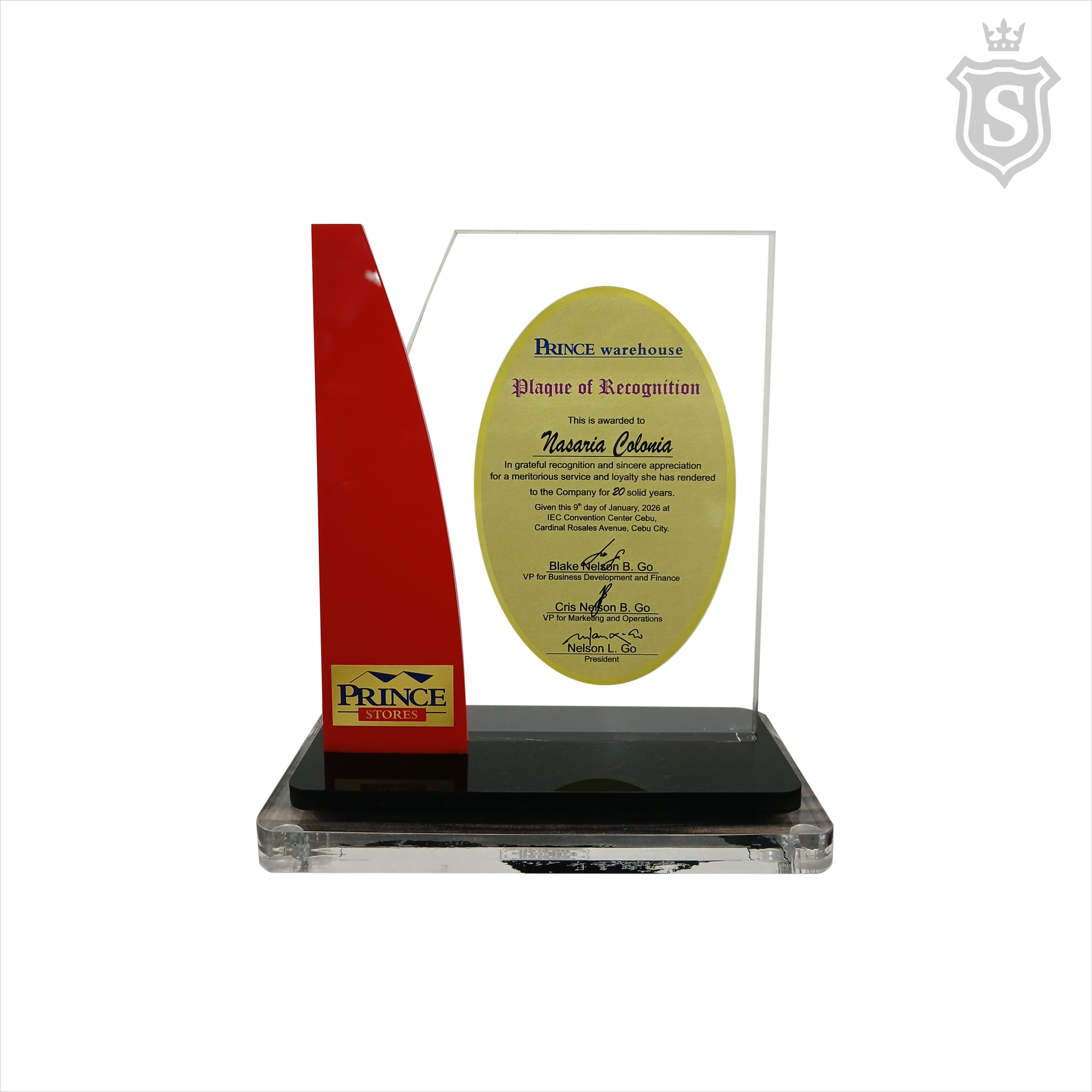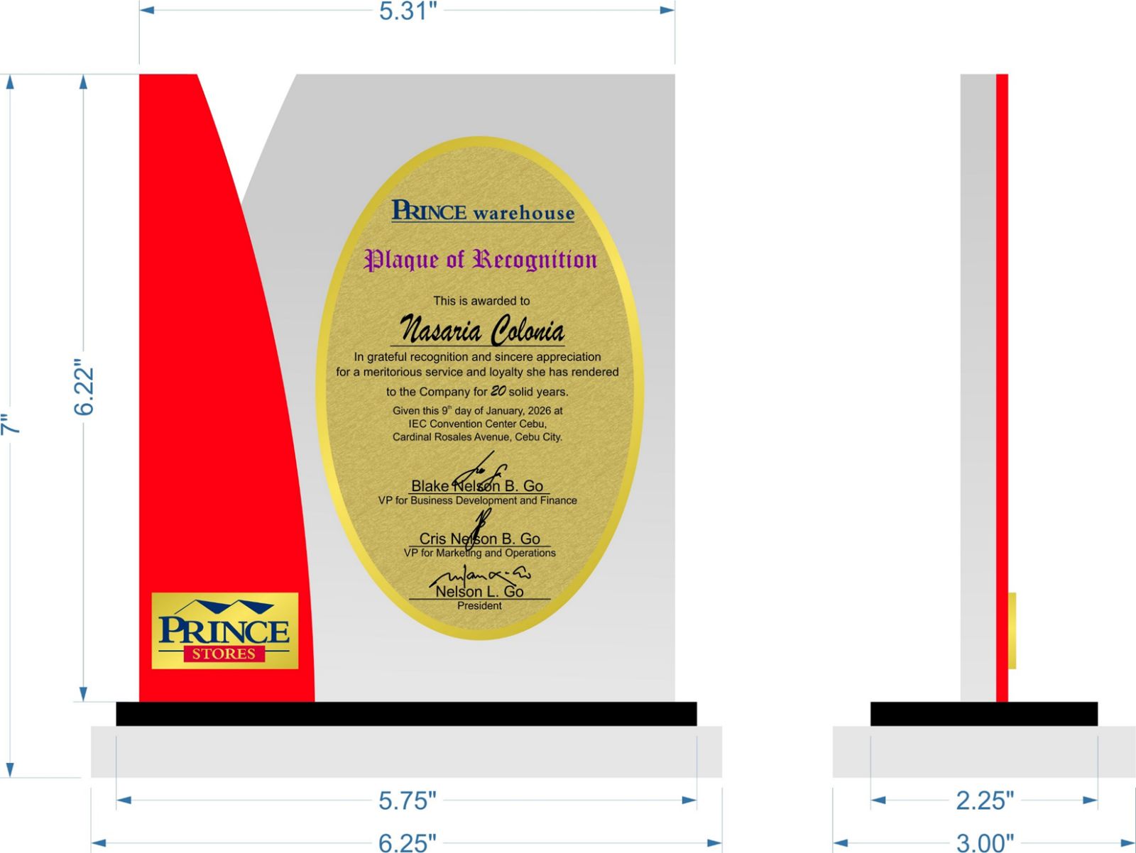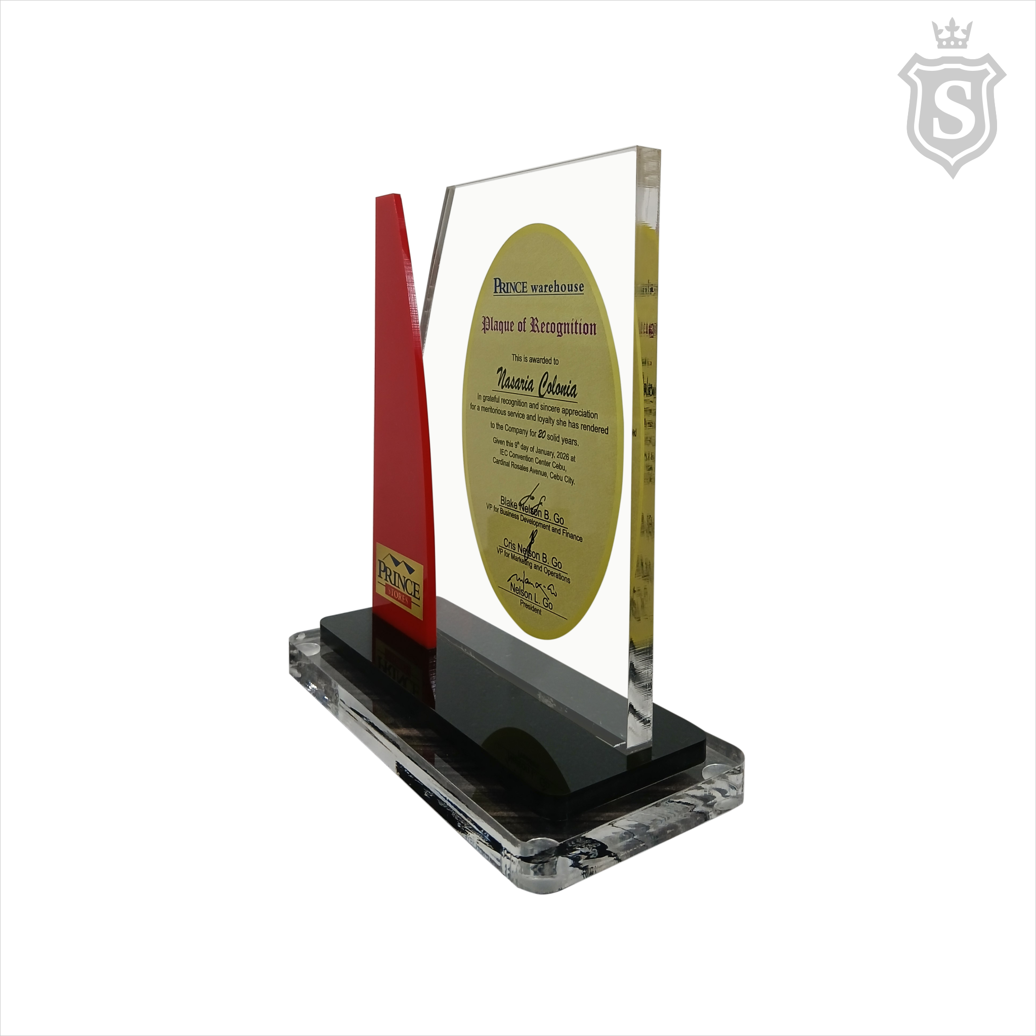 Prince Warehouse Plaque - Plaque of Recognition