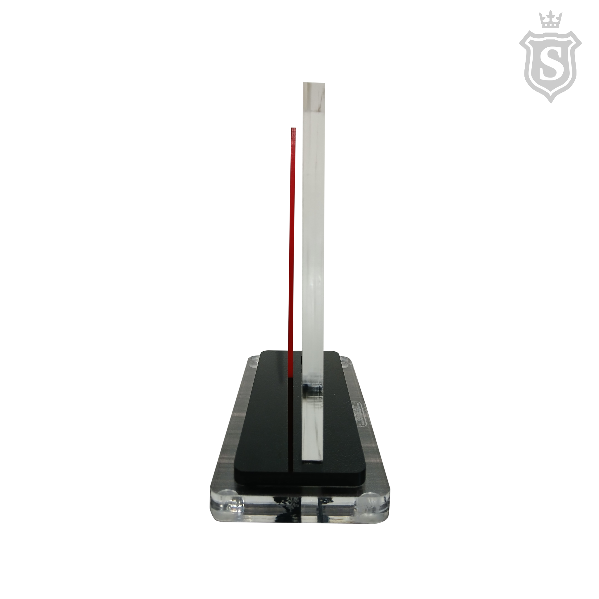 | Overall Size: | Main Body: 9mm Clear Acrylic Accent Panel: 3mm Red Acrylic (Gloss) Base Layer 1: 6mm Black Acrylic Base Layer 2: 12mm Clear Acrylic (Polished Edge)(Custom sizes available upon request) |