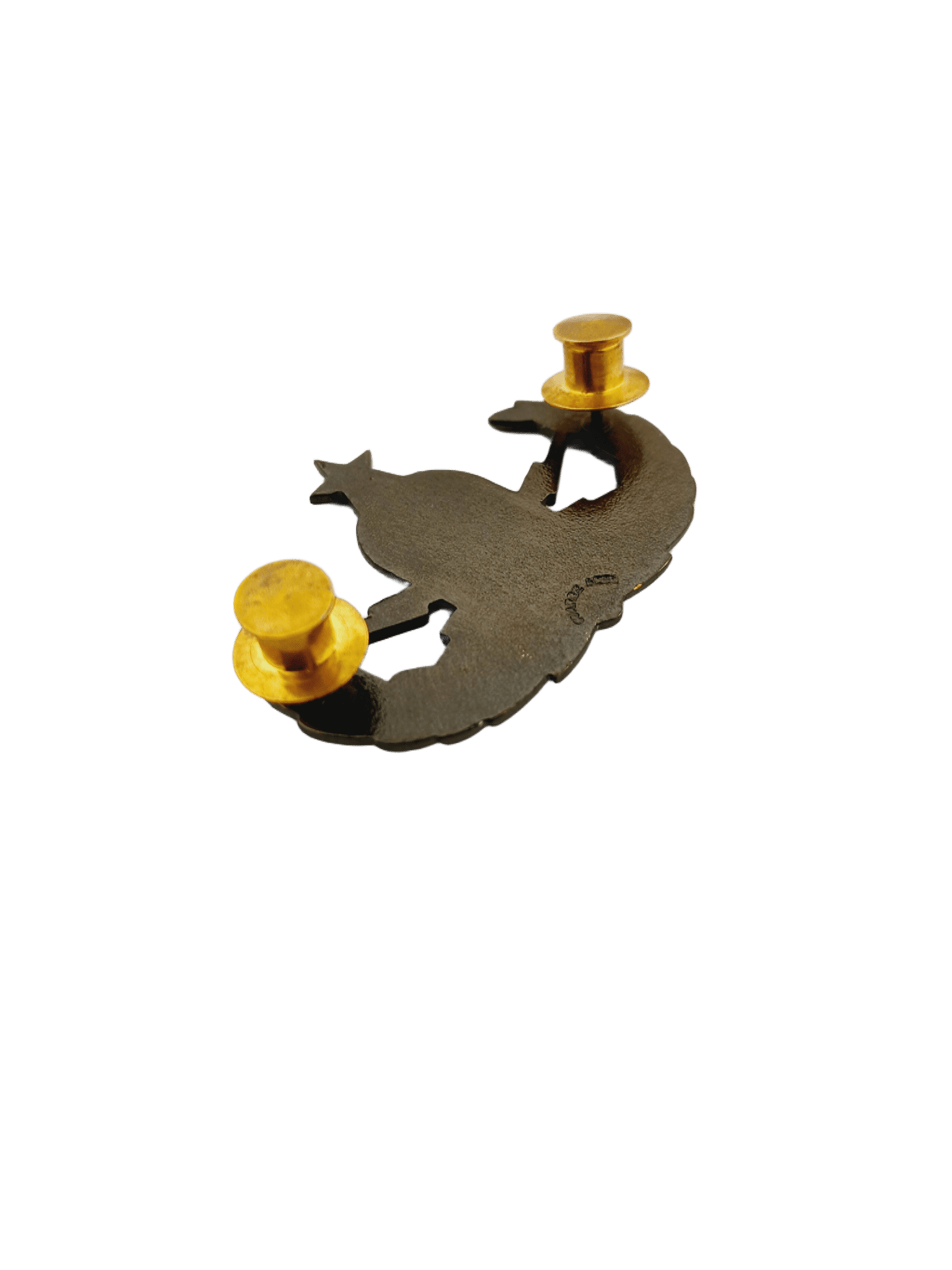 Production Style: Embossed metal using custom molds with high-pressure stamping; hand-finished, electroplated, and painted for detail